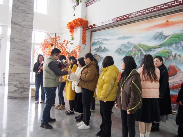 山东k1体育控股集团党支部书记刘子豪代表党支部与工会为集团女神们送去节日祝福与暖心礼物,并祝福各位女神们,做一朵自由生长的花,勇敢而细腻,温柔又有力!